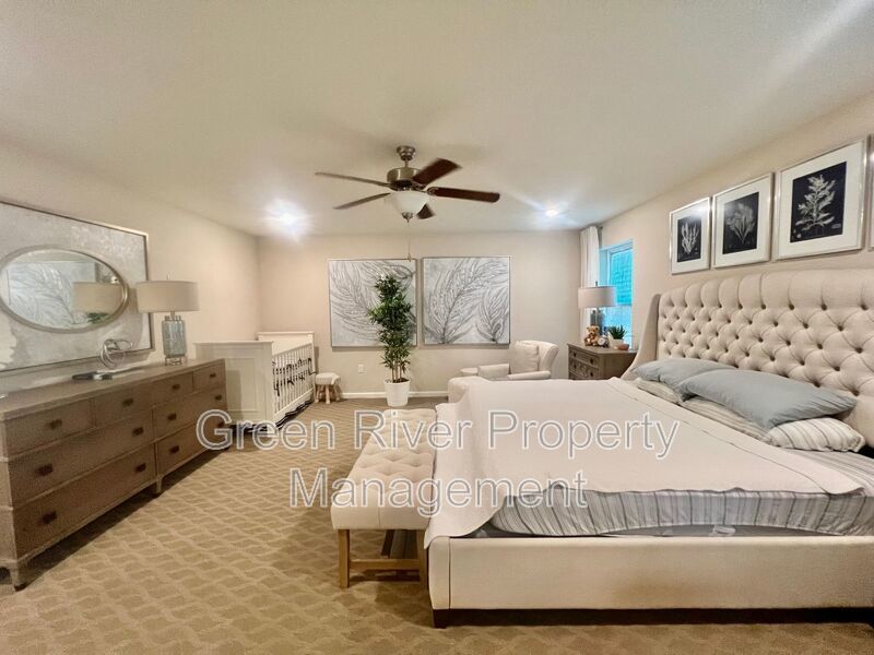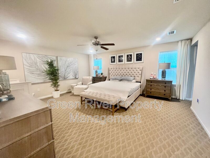 Available: NOW! 1 small pet 25lbs and under allowed. You will love this former model home! All the upgrades you are looking for. 1 bedroom downstairs and full bathroom. Open concept family room, dining and kitchen. Sliders open to a manicured backyard. Tile floors that look like wood throughout the ground floor. Carpet in bedrooms and stairs. Kitchen has Stainless Steel appliances, nice size island, white cabinets. Gas in the home. Upstairs has a loft and 3 bedrooms plus 2 full baths. Master bedroom is large, with walk in closet and bathroom has separate shower, soaking tub and 2 sinks. The hallway bathroom has lots of counter space with 2 sinks and a combo shower/tub. The laundry room is on the 2nd floor. washer and dryer will be provided and is "As Is". Please note the W/D pictured is not the one staying. Owner will place a set after moving. At a minimum, credit score(s) must be a combined 500. Gross Income must be 3 x the monthly rent.